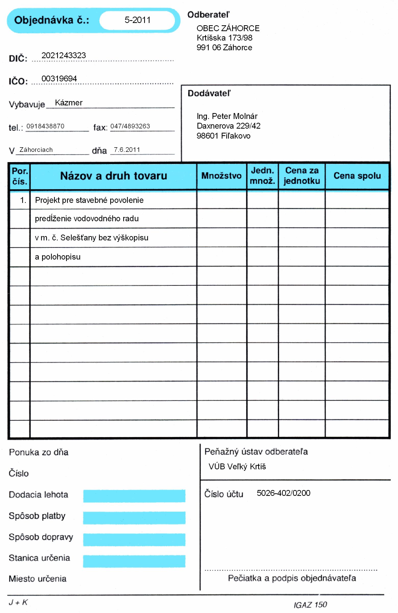 PD - stavebné povolenie - predĺženia vodovodného radu Selešťany